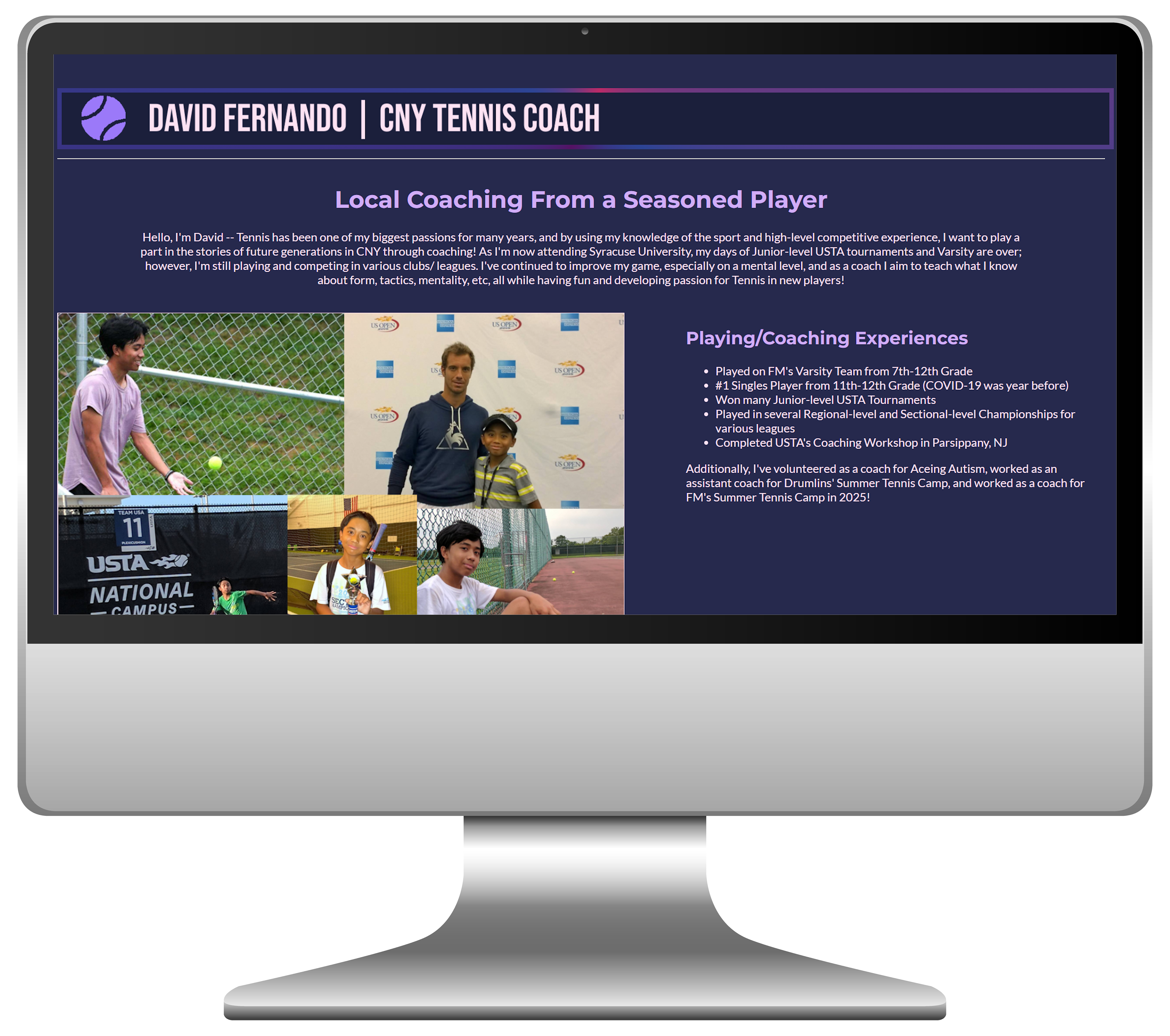 A website I developed for my Tennis coaching business, aiming to inform potential clients about myself, my experience, and coaching rates